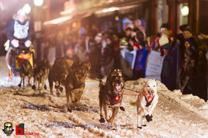 Dogs race through downtown Calumet in the Copper Dog 150.