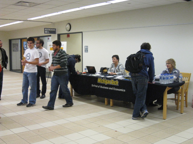 On Wednesday, April 9th, The Michigan Tech Finance Club hosted their second event of “Broke and Hungry?”. 53 students attended the event, lured by the promise of knowledge and pizza. This year, local Edward Jones advisors Dan Dalquist and Shelly Larson took the time to talk to students about investing their money. The main topic for discussion was the transition from college life to getting that first job, as well as the importance of saving for retirement. Dalquist preached to students from all majors about technical financial topics such as tax savings, retirement plans, and asset securities. Presenting some scary statistics about the current financial situation of most Americans, Dalquist and Larson appealed to audience members about the merits of getting their finances in order. Since Tech students are numbers-driven, students were able to clearly see the drawbacks of waiting to save for retirement. Ensuing the presentation was a barrage of questions. Students were very interested in both advisors’ opinions of the future states of the market, social security, inflation, and how Edward Jones operates. Even after the session concluded, both advisors spoke with many students one-on-one to answer specific questions.