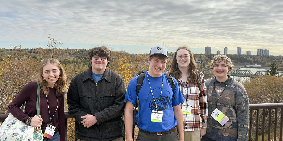 The group made their way to the conference each day on foot through a local park. While there, they attended symposiums, research presentations, networking events, and a bat walk. Students spoke with professionals from across the continent in various stages of their careers and different wildlife fields. In the city, the group also visited the Muttart Conservatory and did some bird watching.