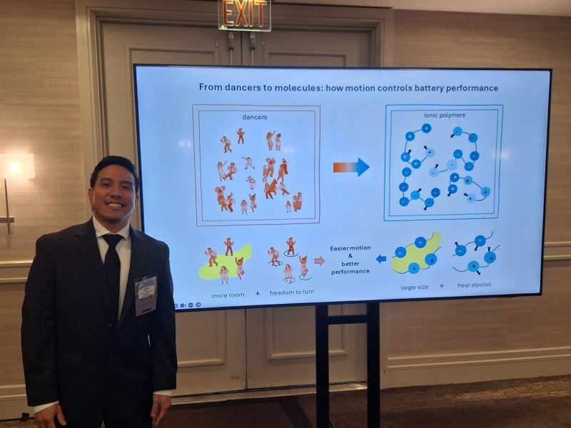 Among the competitors from major institutions across the region, Itliong stood out with his presentation, Molecular Choreography: The Physics of Flow in Ionic Polymers. Advised by Issei Nakamura, associate professor of physics, Itliong’s research focuses on soft condensed matter.
