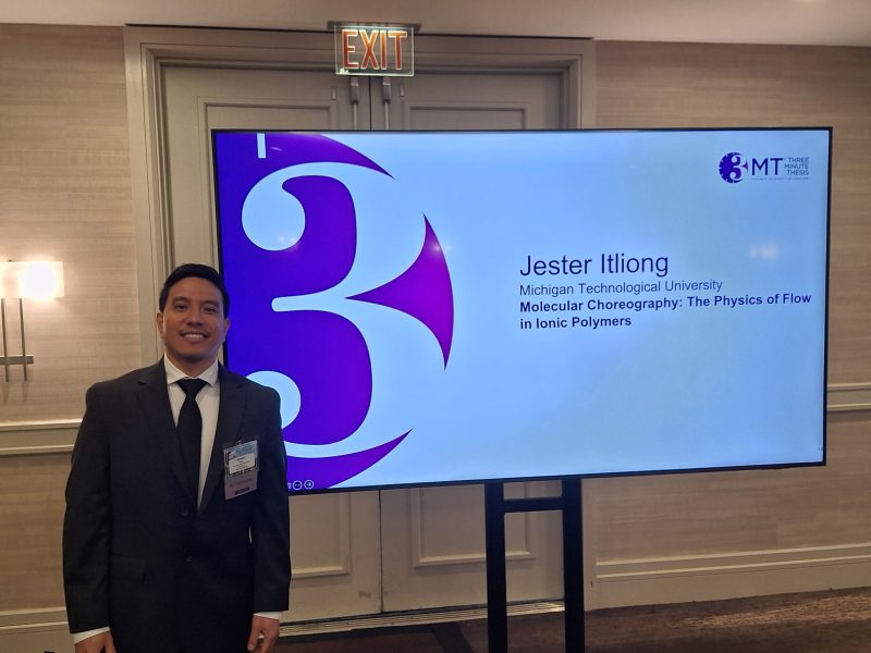 The 3MT competition challenges graduate students to explain years of complex research in a three minute presentation suitable for a general audience using only one static PowerPoint slide. Itliong earned his spot as Michigan Tech’s sole representative after winning first place at the university’s local 3MT competition in December 2025.