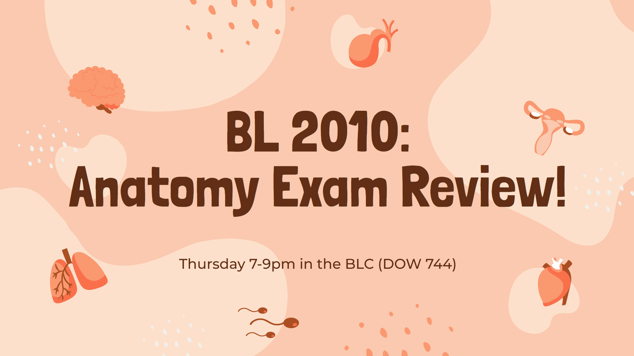 Are you a current BL2010 student? The Biology Learning Center (BLC) is hosting an exam review session for your next exam! Come review with us in the Biology Learning Center (BLC), located in DOW 744, TOMORROW (Thursday 11/13) from 7-9pm. No need to RSVP, just show up and bring all your questions!