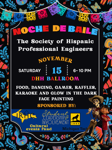 Noche de Baile is a free cultural event hosted by the Society of Hispanic Professional Engineers. It will take place in the DHH Ballroom on campus, making it easy for everyone to join. We expect about 90–100 people to attend. This event is a fun way for students to relax, meet new people, and learn about Latino culture. There will be music, food, games, prizes, karaoke, glow in the dark face painting, and plenty of dancing!