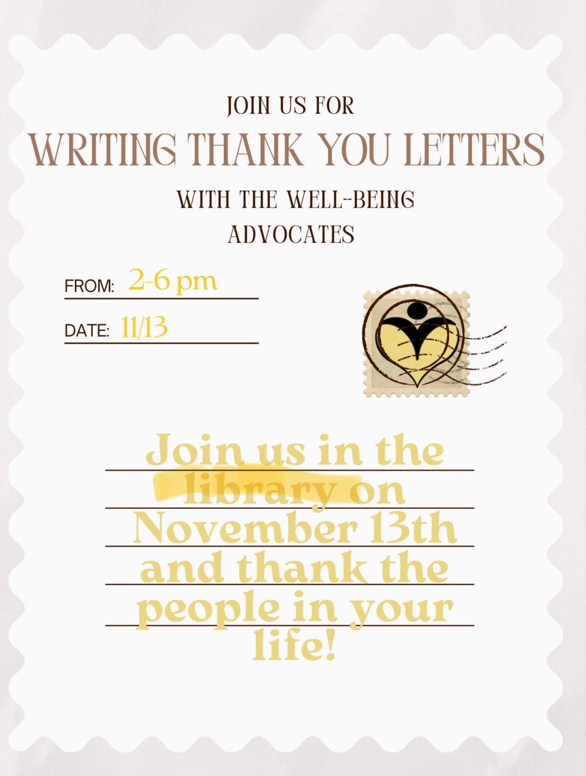 Need a breather before finals? Come sip hot cocoa and make cards with us! Create something special for the holidays, Christmas, Hanukkah, or just to say thank you to someone who made your semester great. Bring a friend, enjoy the cozy vibes, and take a break on Tuesday, December 2 from 6–8 PM in the MUB Commons. Follow us on Instagram and Facebook to keep up to date with our latest events!