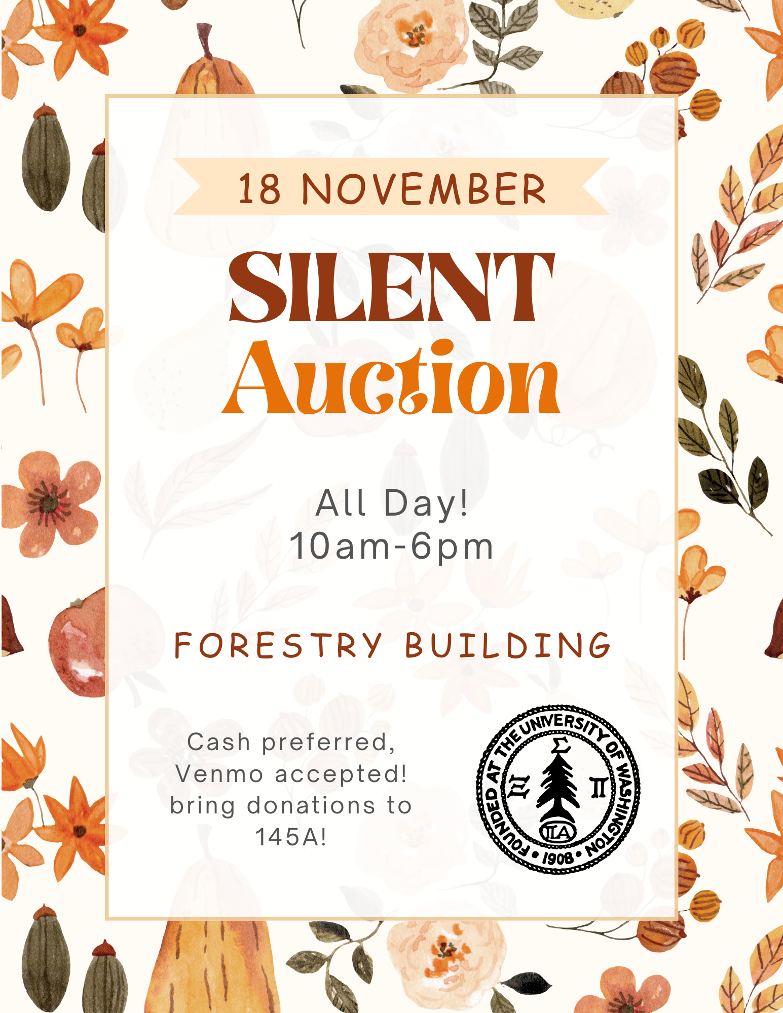 Xi Sigma Pi’s annual silent auction is going to be on Tuesday November 18th from 10:00am to 6:00pm, which is the week before Thanksgiving break. We’ll have various items donated by CFRES students, faculty, and staff. In the past we’ve had earrings, posters, shirts, and hats.