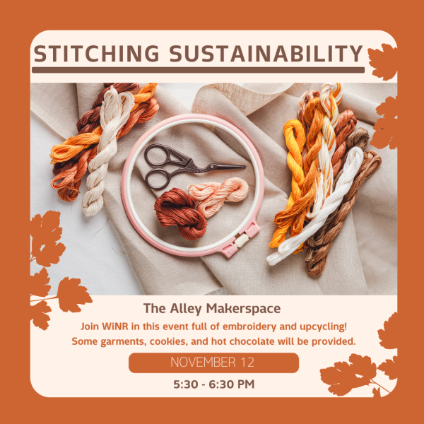 Join us for Stitching Sustainability with Women in Natural Resources. We will be having a relaxed evening of creativity, community, and conservation. Enjoy hot chocolate and cookies while you breathe new life into old clothing through embroidery and upcycling.