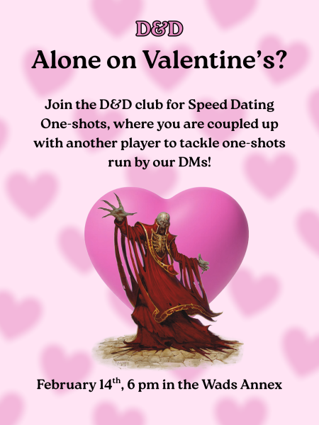 Join the D&D club for Speed Dating One-shots, where you are paired up with another player to take on some puzzle-based one-shots as a couple!