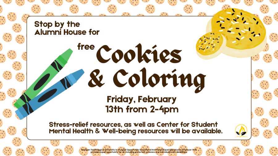 Do you like free cookies? Come and get some at Cookies and Coloring! Stop by the Alumni House basement on Friday, November 14th between 2-4pm for some free cookies and coloring! Enjoy tasty treats while you relax with some coloring—it’s a perfect way to de-stress and recharge.