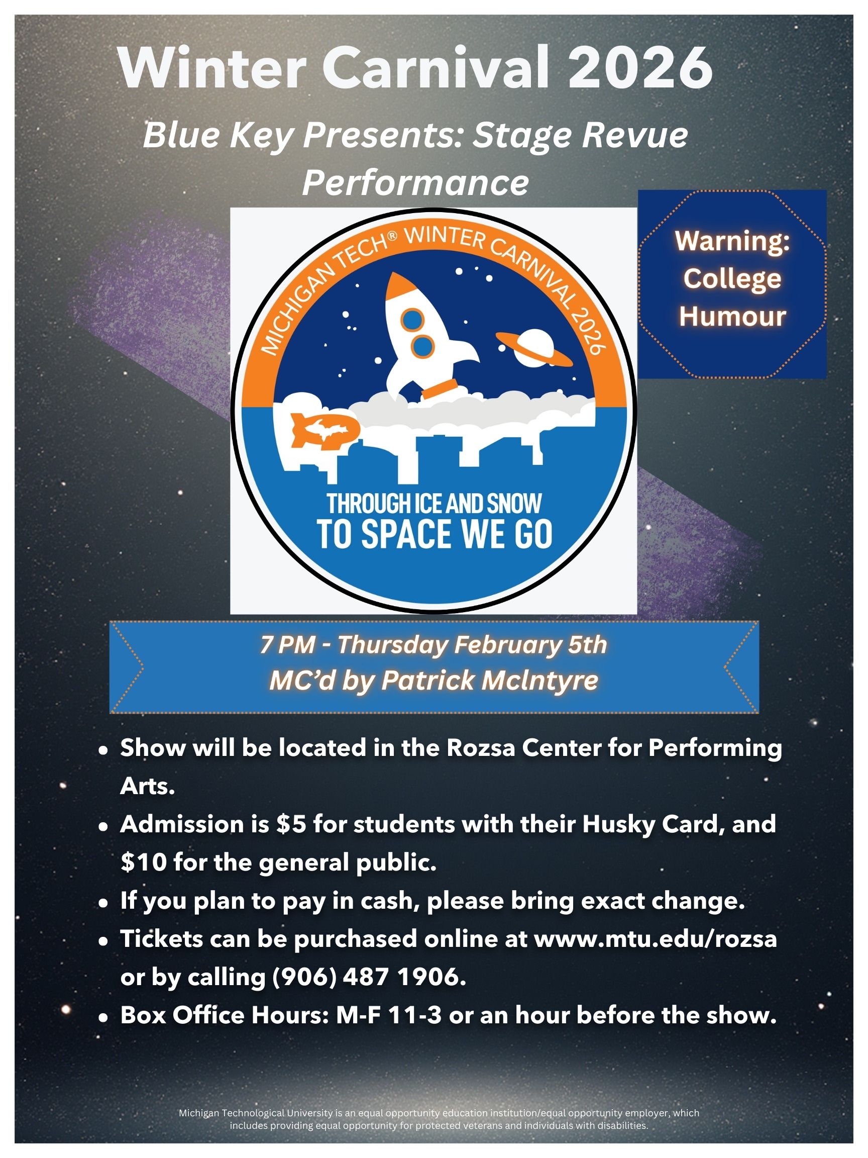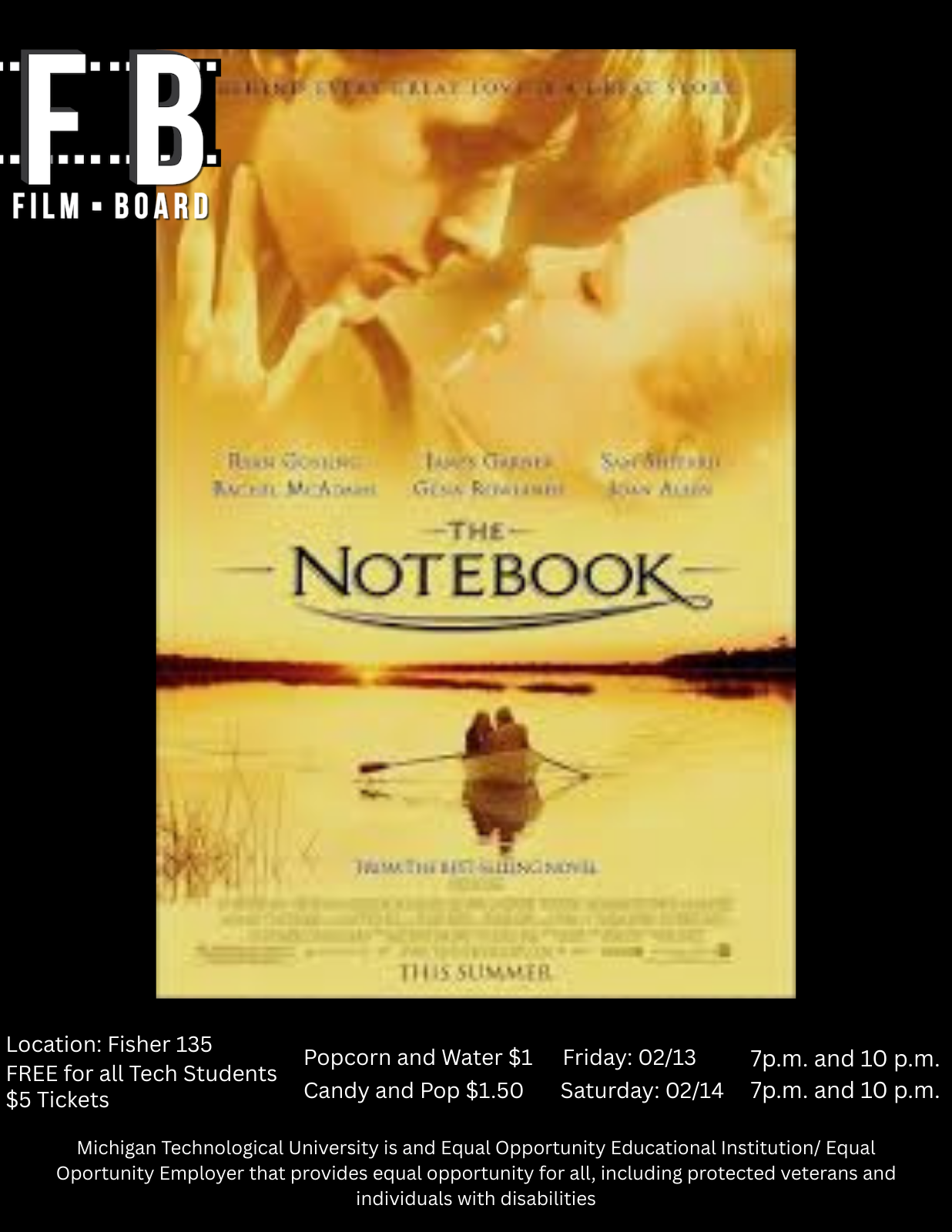 Located on Michigan Tech’s campus in Fisher 135. Free admission for tech students and $5 for community members. Concessions are $1.50 card is accepted. We hope to see you at the movie this weekend and have a great day.