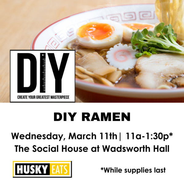Didn’t have time to prep a meal? Want to help reduce food waste? Stop by the HuskyFAN food pantry Tuesday through Friday to grab a UFO meal! These pre-packaged meals are easy to just heat up in the microwaves in Fisher Hall, the library, or the MUB!