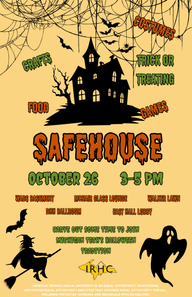 The Inter-Residence Housing Council is bringing back SafeHouse! A Michigan Tech Halloween tradition since 1988! We are inviting kids in the community to come to campus to trick-or-treat and enjoy some activities put on by residence hall students. Wear your costume and come to campus for an afternoon of fun with community members and students alike. Many residence hall communities will be working together to put on this event, so be on the lookout for more information from RAs! We’re also looking for volunteers for the event, so if you need volunteer hours, this is a great event for you!