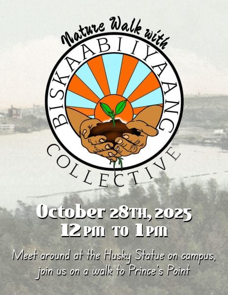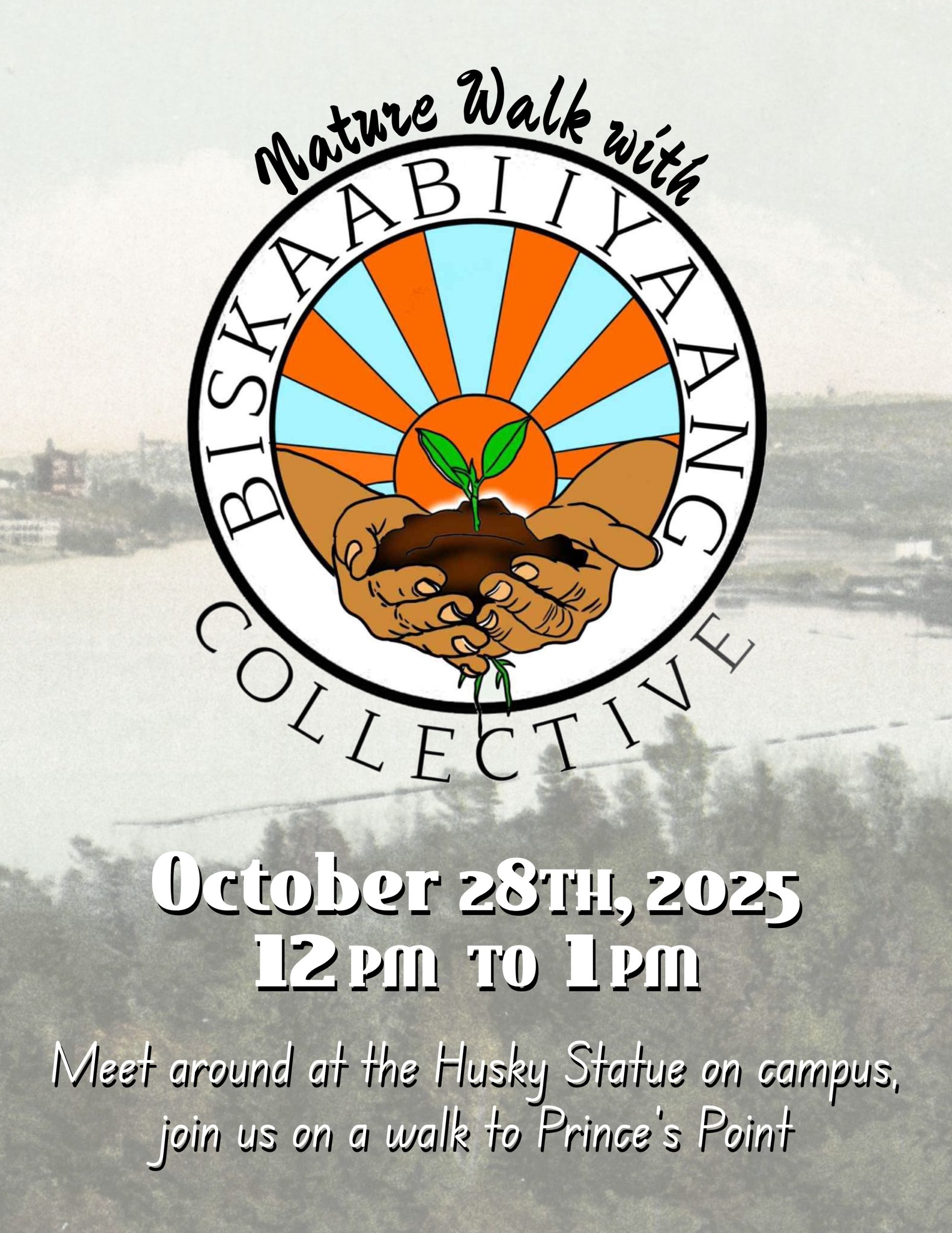 Come join Biskaabiiyaang Collective for a nature walk next Tuesday, the 28th! We’re planning to meet at the Husky statue at noon, then walk to Prince’s Point. Biskaabiiyaang Collective (formerly AISES) is the Indigenous student RSO on campus. If you have questions about this event or the org in general, feel free to email us at aises@mtu.edu. Hope to see you there!