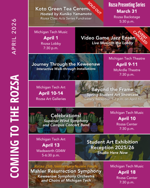April at a Glance: Arts & Entertainment at the Rozsa FREE to Michigan Tech Students