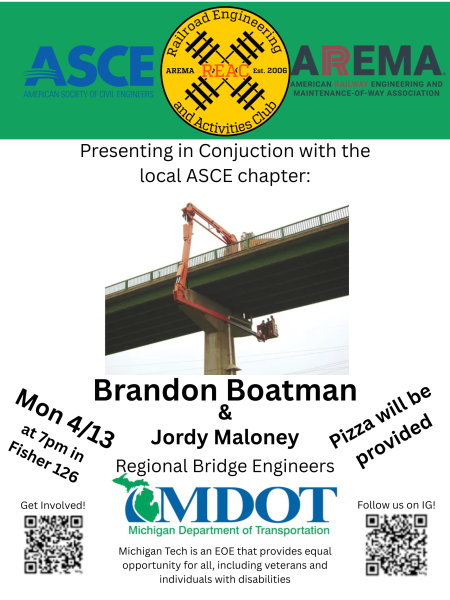 Come join us from REAC and those from the local ASCE chapter as we welcome Regional Bridge Engineers Brandon Boatman and Jordy Maloney as they present about their experiences working in the field.