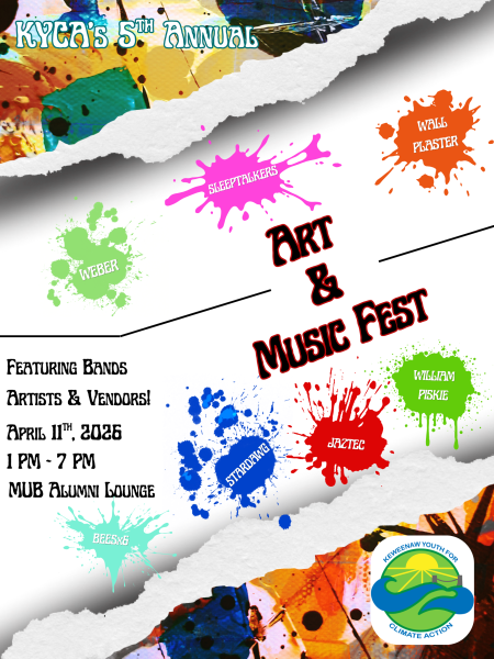Come to Art and Music Fest! It will be in the Alumni Lounge from 1-7pm on April 11th. We will have fantastic art showcases, wonderful live music, delicious (and free) food, and an amazing community. We would love to see you!