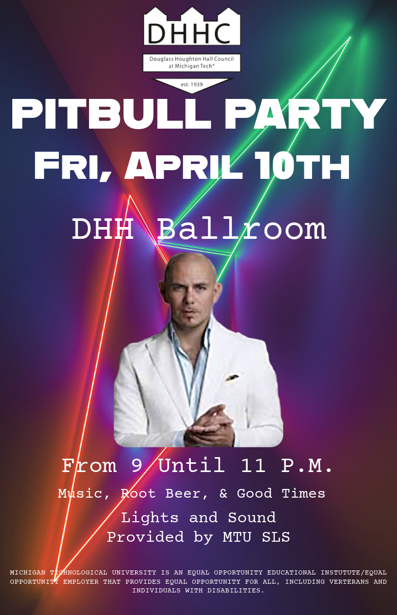 Join DHHC in the DHH Ballroom from 9PM to 11PM THIS FRIDAY for Pitbull Party. Stop by for good times, good tunes, and lots of root beer (from a keg). There will be a special appearance from “Pitbull” also, and you are welcome to come dressed according to the theme, or just rock the 2000s vibe. End the 2025-26 academic year right with one last spectacular party!