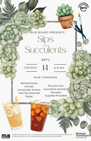 Join us in the MUB Commons from 6-8pm on April 14th for a chill painting and potting event. With decoration supplies, succulents, and terracotta pots provided.