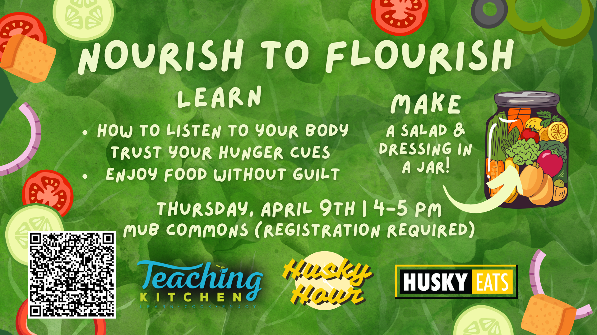 What we eat plays a big role in how we feel, focus, and function each day. Join us for Nourish to Flourish Husky Hour, where you’ll build a salad-in-a-jar and learn more about simple, realistic healthy eating habits. Come for the hands-on activity, leave with ideas to support your energy and well-being. (registration required)