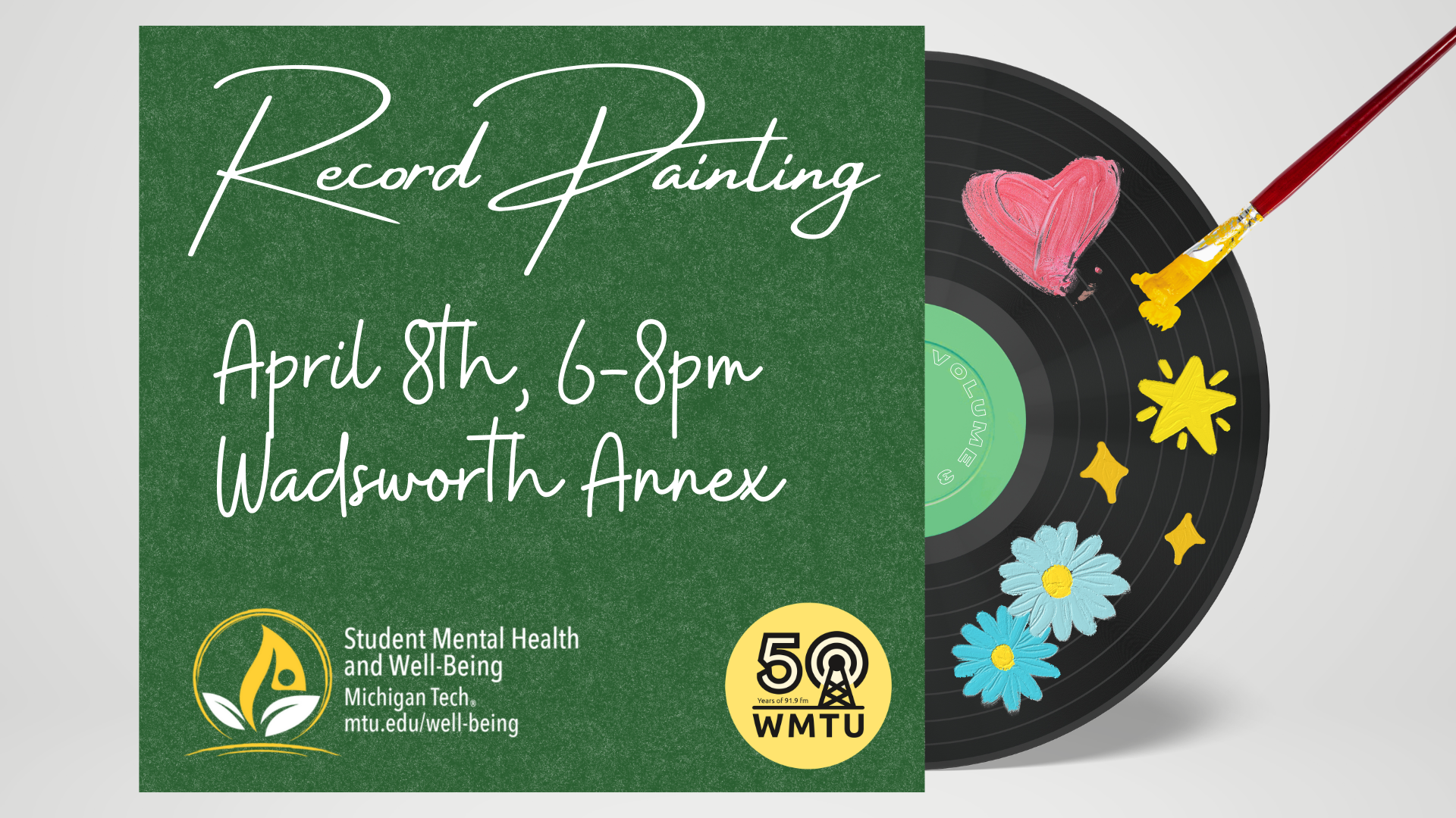Take a study break and tap into your creative side! Join us and WMTU for a calming paint night using recycled vinyl records.