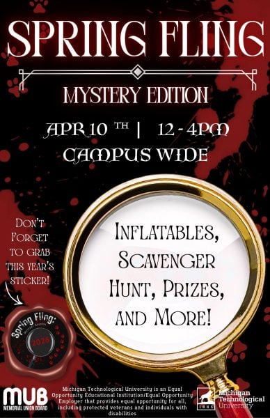 Blue Key Honor Society would like to announce the 2027 Winter Carnival theme, “Mysteries Run Cold, Cryptid Secrets Unfold.” With this announcement, we would like to invite you to submit a design for the new Winter Carnival logo. All submissions must be turned in to the Blue Key office in MUB 106 or emailed to bluekey@mtu.edu by 12:00 pm on Sunday 4/12. Please feel free to reach out with any questions or concerns.