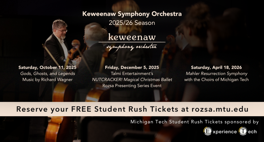 To purchase tickets, please call (906) 487-2073, go online at mtu.edu/rozsa, or visit Ticketing Operations at Michigan Tech’s Student Development Complex (SDC). Tickets will also be available at the Rozsa Box office the evening of the benefit. The Rozsa Box Office opens two hours before event times.