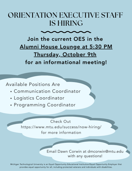 Please visit https://www.mtu.edu/success/now-hiring/ for further information or email Dawn Corwin at dmcorwin@mtu.edu with any questions!