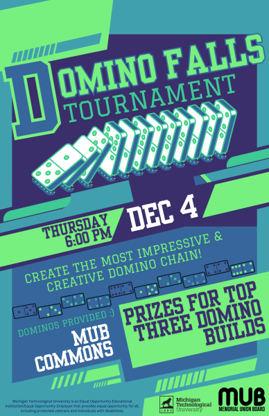 Test your stacking skills and create creative and fun domino chains in a competition to see who can create the most impressive design and domino chain fall! Bring your friends or come make some new ones, there will be prizes for the top chains! We will provide the dominos, so we hope to see you there to enjoy one last event before finals week.