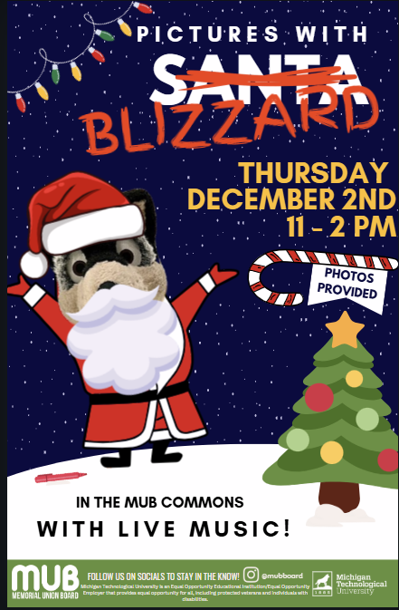 Join MUB Board for the second annual Photos with Santa Blizzard on December 2nd from 11am – 2pm in the MUB Commons!