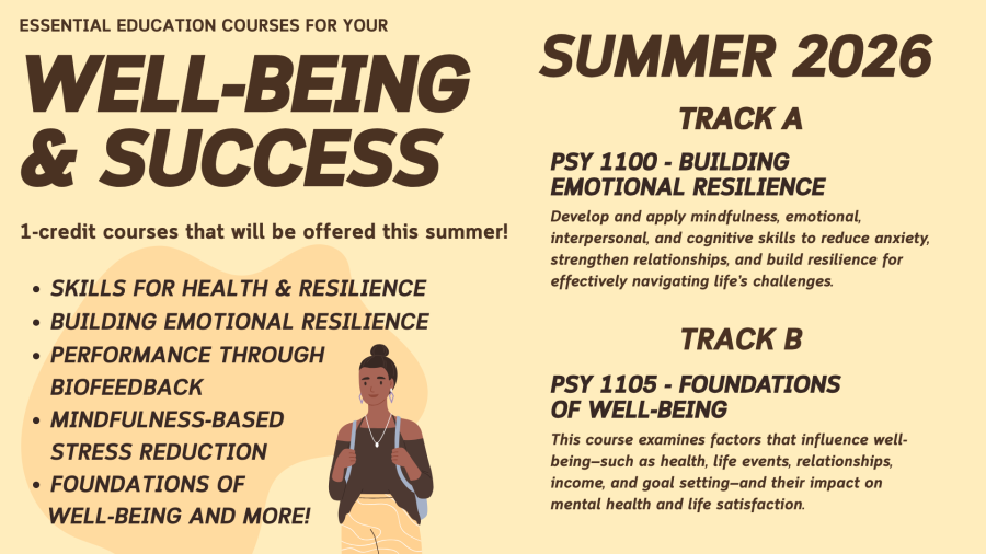 Looking to support your mental health and well-being this summer or fall? Activities for Well-being and Success courses offer flexible, engaging ways to build skills that help you manage stress, strengthen resilience, and thrive at MTU. These 1 credit courses also count toward Essential Education requirements. Explore options like Skills for Health & Resilience, Building Emotional Resilience, Performance through Biofeedback, Mindfulness-Based Stress Reduction, and Foundations of Well-Being—plus more! Find a course that fits your goals and invest in your well-being.