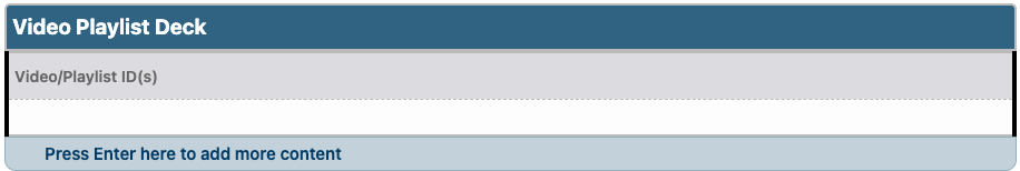 - In the Video/Playlist ID(s) field enter the ID only of an existing YouTube playlist or multiple IDs for individual videos separated by a comma.