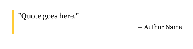 This snippet creates a formatted blockquote that includes the quote and the author. View the blockquote in the Style Guide.